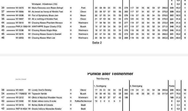 Insgesamt waren 15 Windspielhündinnen gemeldet und 13 am Start. Mit von der Partie Kiwi, Maja und Hicks.