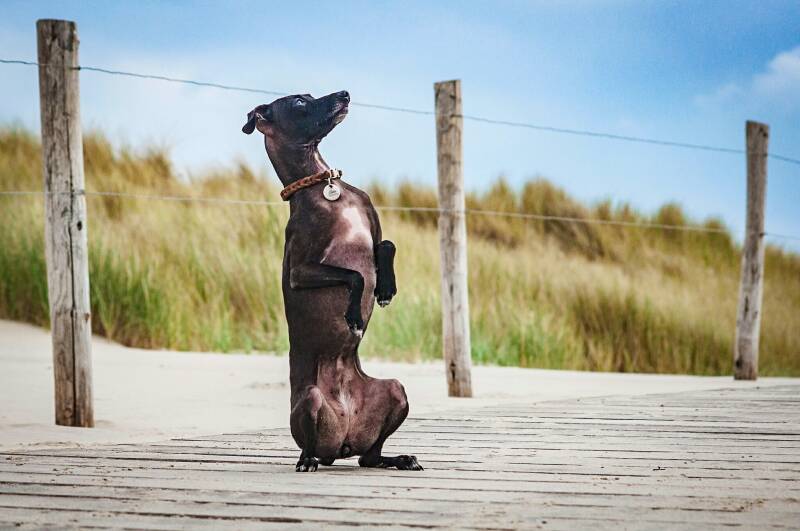 Meine kleine Erbse, mein Traumhündchen - Sie ist mein "Arbeits-Windspielchen". Sie ist so unglaublich clever und lernt unglaublich schnell. Sie ist ein Profi im Clickern und hat jedes Kunststück im Hand umdrehen drauf. Ihr macht es unfassbar viel Freude zu arbeiten. Ob es Rennbahn, Agility, Flyball, Obedience, Apportieren oder Tricksen ist - sie ist bei Allem mit vollem Eifer dabei! Wenn es sie nicht gäbe, ich könnte sie mir nicht besser backen. Für mich ist sie perfekt genau so wie sie ist. Allerdings hat sie keine Papiere, sodass sie nicht in die Zucht und keine offiziellen Windhundsportwettkämpfe bestreiten darf. Erbse stört das jedoch herzlich wenig, solange sie im Training weiterhin ihr Häschen jagen darf.