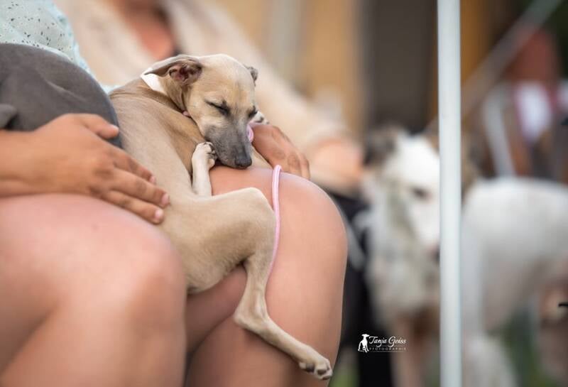 Alles andere als entspannt ist die Kleine allerdings wenn es ums Häschen jagen geht. Beim Coursing und der Rennbahn ist voll fokussiert. Die Leidenschaft für die Jagd hat sie definitiv von ihren Eltern geerbt. Dann ist von ihrer Unsicherheit auch gar nichts mehr zu sehen. Ihre Lizenzen hat sie mit Links abgelegt und auch direkt auf Anhieb ihr erstes Coursing gewonnen. Auch sie hat es geschafft bereits bei einem großen internationalen Coursing in Belgien bester Hund aller Rassen zu werden und bekam das "Best in field" zugesprochen.